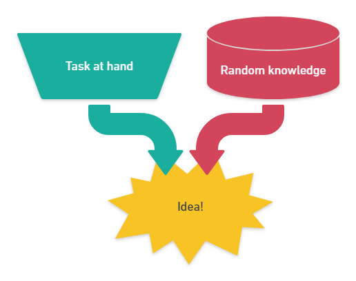 All of the above can be done within a project, apart from 1a. This is really the heart of the matter. In order to unlock your creativity you need those random pieces of knowledge - diversify for more ideas! Otherwise there is nothing to create with! Random knowledge is 50% of the new idea, matched in your head to the 50% that comes from understanding the task at hand.